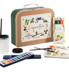A beautifully decorated sturdy cardboard suitcase contains all you need to create your own watercolour paintings....