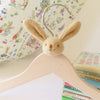 Wooden child size coat hanger with sweet embroidered bunny head.