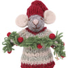 Mouse wears knitted dress and hat, and carries a swoolly festive garland.