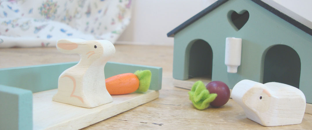 A lovely selection of traditional wooden toys - pretty painted play sets, beautiful toys to treasure